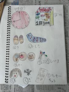 9月の宿題は【く】がつくものりこちゃん沢山描いてきてくれました!色もしっかり塗れてます。