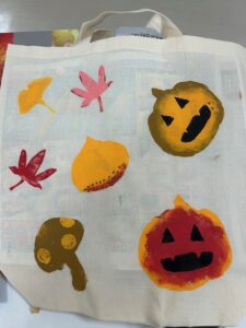 匠くんのバッグ、丁寧な色の塗り方ですね。ぼかしてみたり、違う色を入れてみたり、工夫しましたね。 いろんな画材を使って葉っぱを描く!Kちゃんの真ん中に葉っぱがどーん!がいいですね。