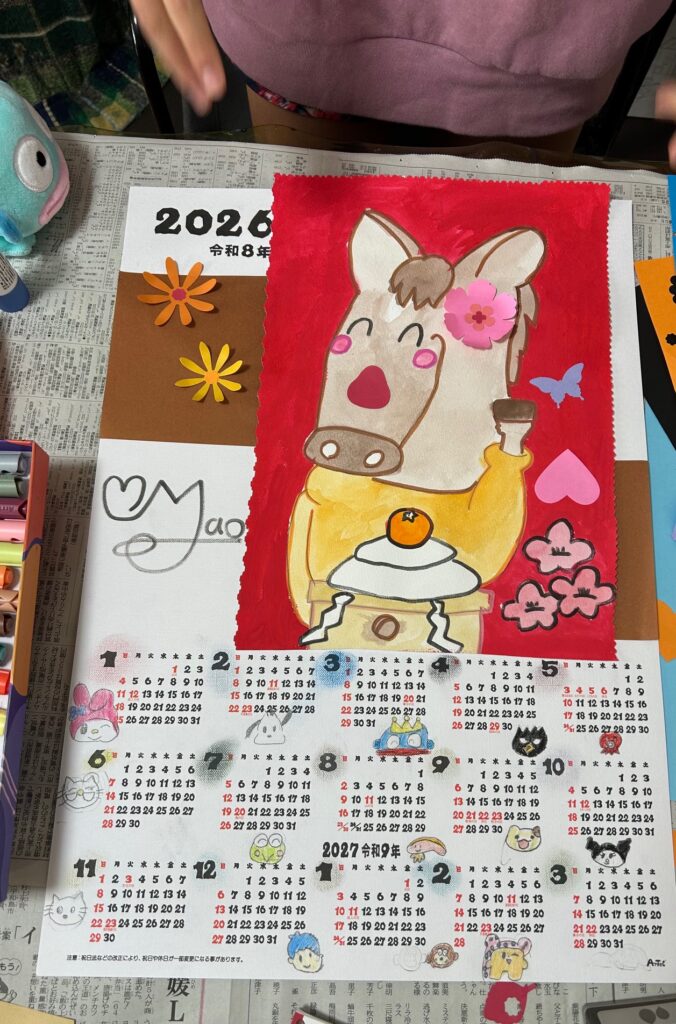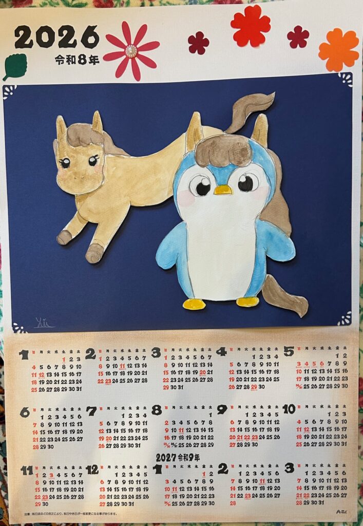 12月のグランプリ作品(教室) 2026-01-10 最終更新日時 : 2026-01-10 馬越 まゆみ 今月は沢山の人がカレンダー仕上げる事ができました!毎年家族の方にも楽しみにしてもらってるカレンダー。いいカレンダーができました✨ゆいちゃんのカレンダー。オリジナルキャラのペンギンとのコラボ。シンプルで素敵にできました。 まおちゃんの馬もいいねー。大好きなサンリオキャラと毎月過ごそう!